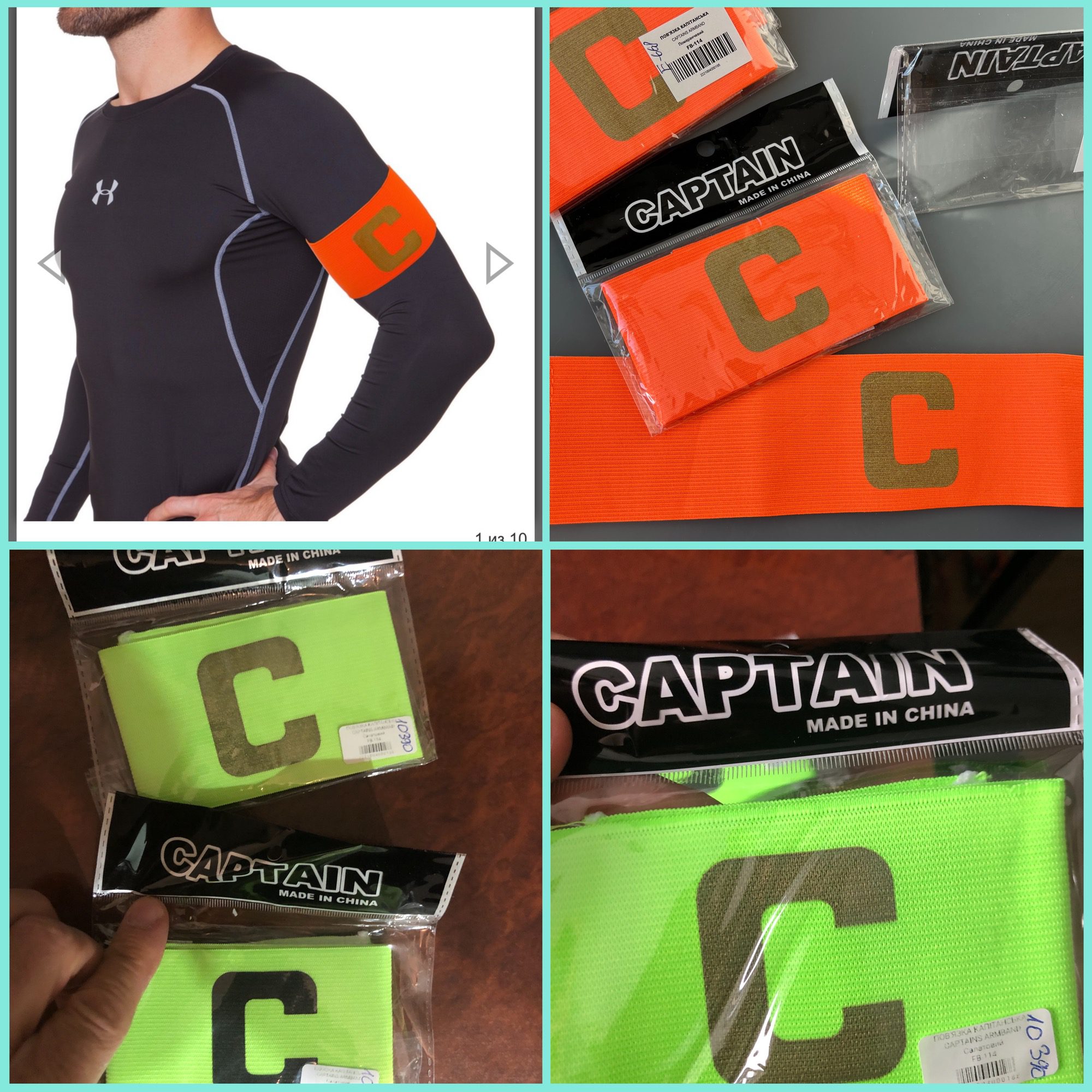 Повязка капитанская футбольная, оранжевая,салатовая