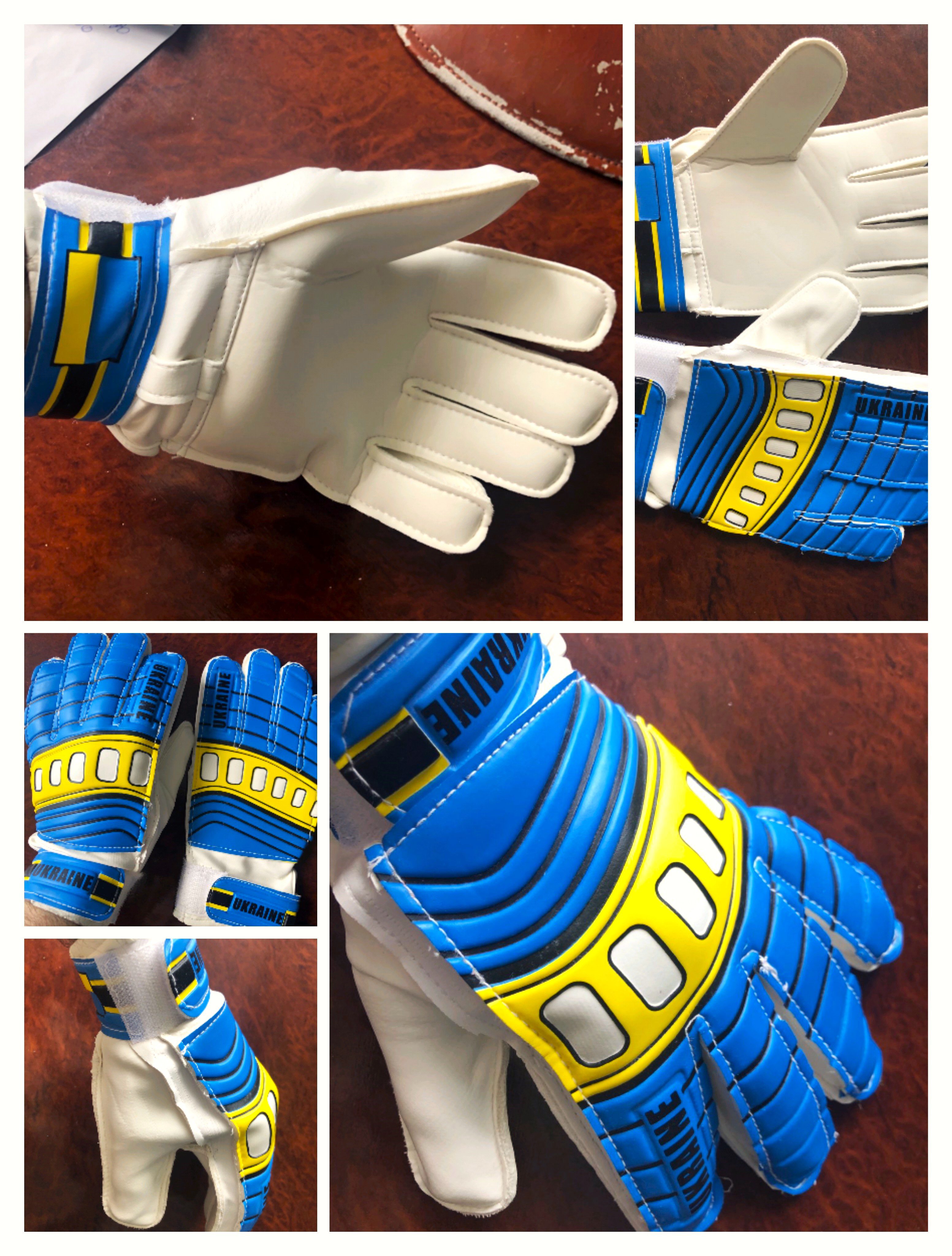 Перчатки вратарские взрослые (с 17 лет) UKRAINE размер 8 (взрослый), голубой-желтый