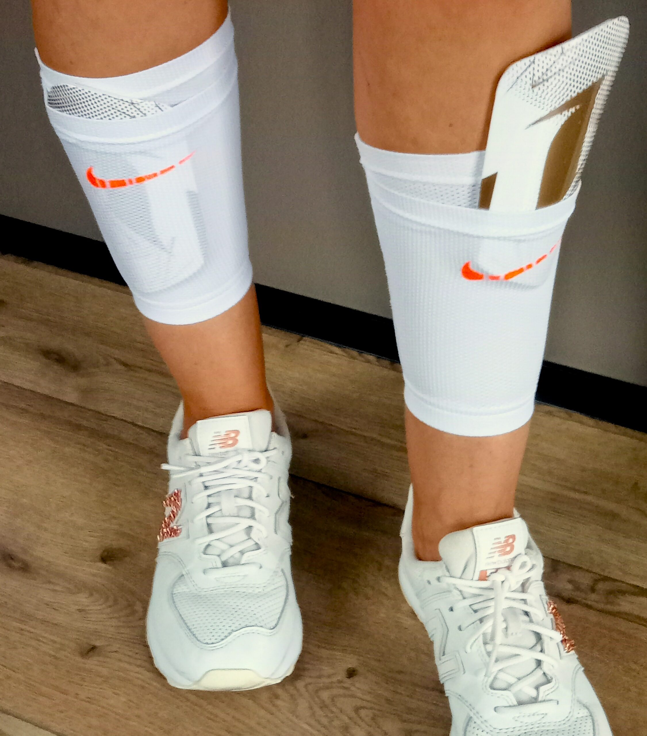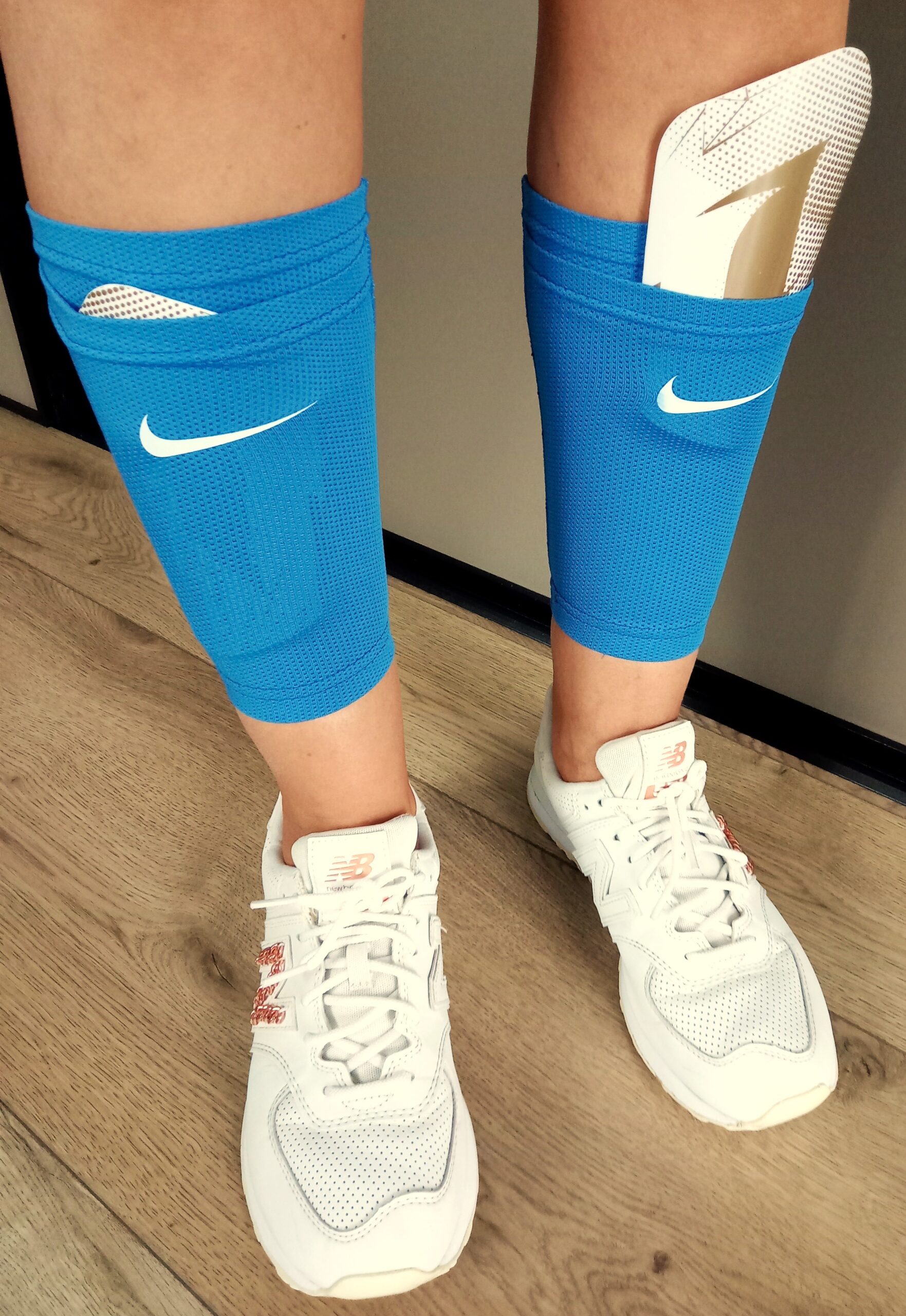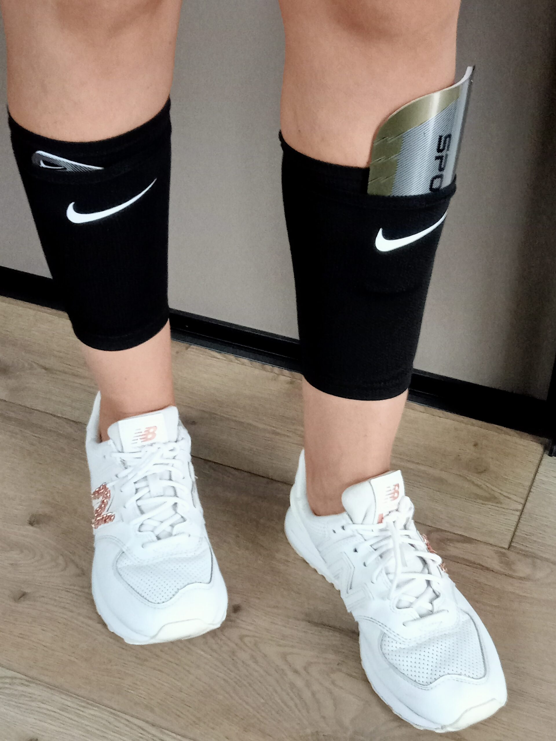 Аксессуар изготовлен из нейлон-сетки, которая “дышит” и не препятствует естественному охлаждению ноги. Пластиковый щиток вставляется в специальный карман на держателе. Держатели не спадают, не смещаются и не создают чрезмерное давление на ноги.