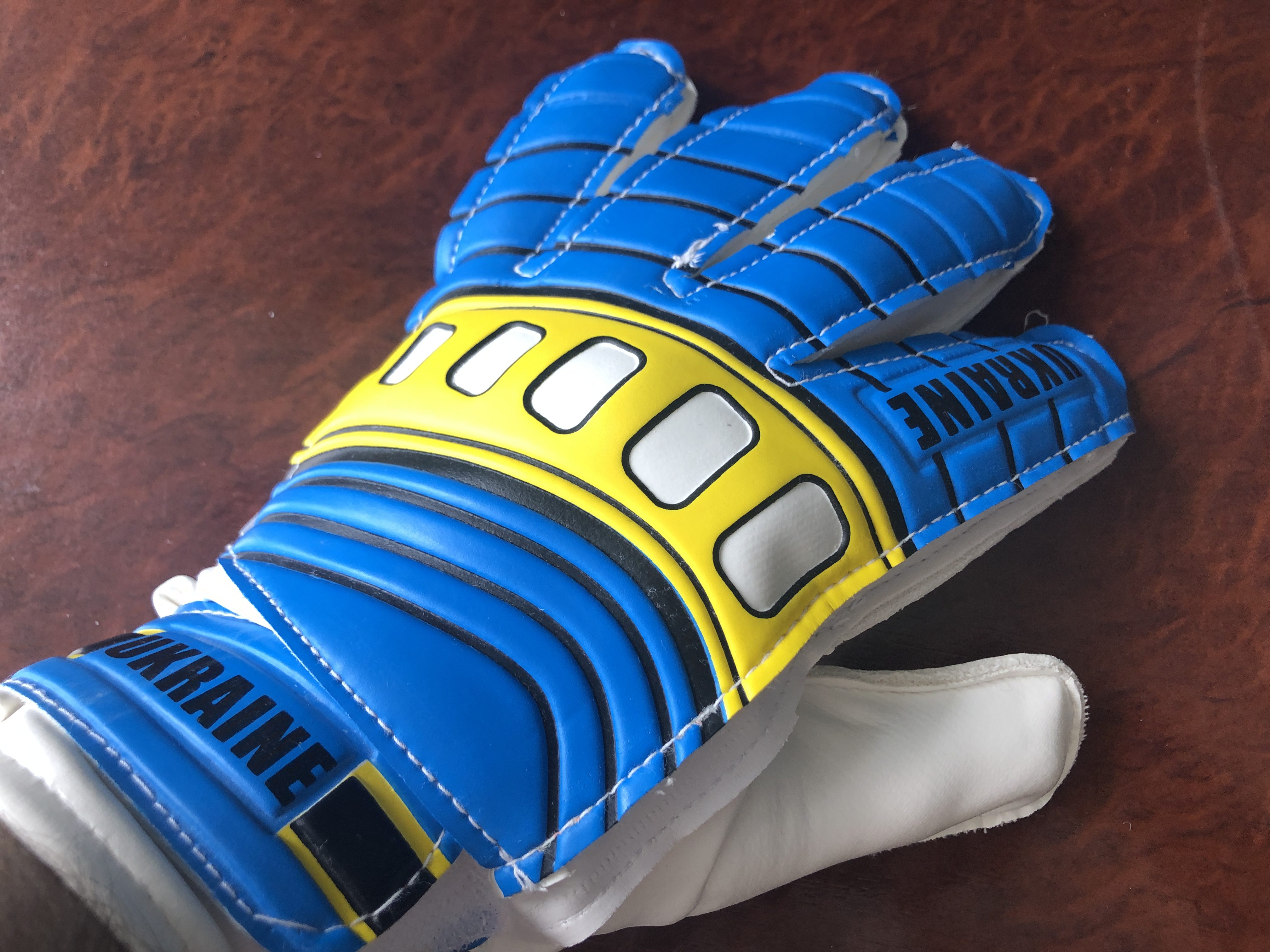 Перчатки вратарские взрослые (с 17 лет) UKRAINE размер 8 (взрослый), голубой-желтый