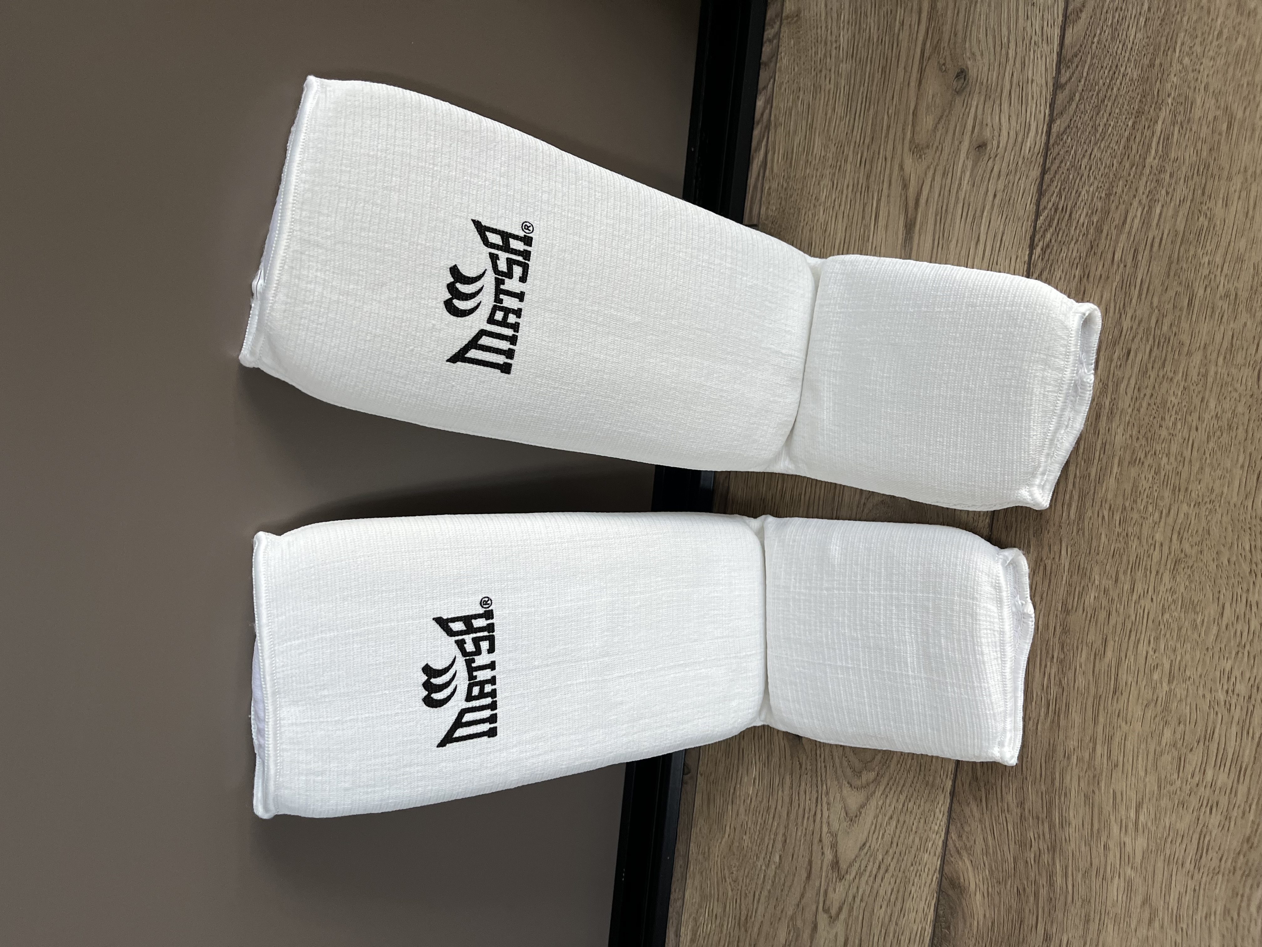 Две раздельные плотные упругие вставки на голени и на подъеме ступни защищают ногу бойца, но не сковывают его движений