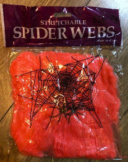 Павутина м'яка помаранчева (з павуками) (для карнавалки, Хеллоуїна)