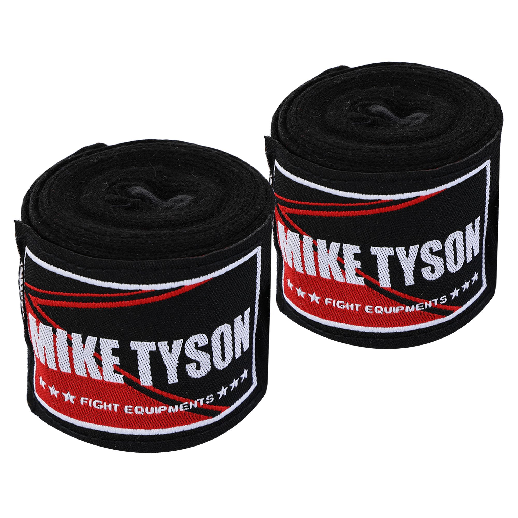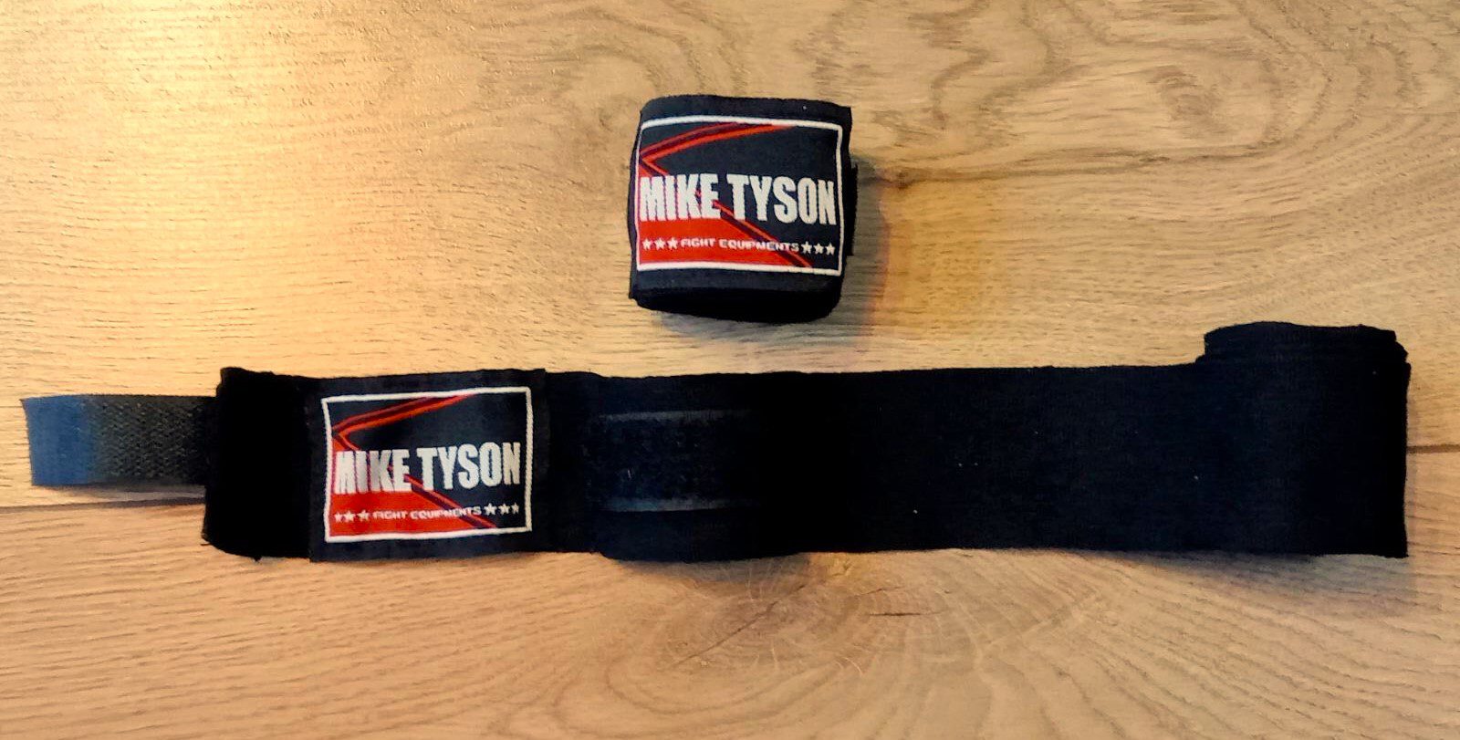 Бінти боксерські MIKE TYSON являють собою довгі тканинні стрічки, які обмотуються навколо кистей і зап'ясть для їх захисту. У комплекті два вироби довжиною по 3 метри, ширина кожної становить 5 см. кулак в анатомічно правильному положенні. Це мінімізує ризик розтягування та вивихів, а також дозволяє уникнути травм великого пальця.