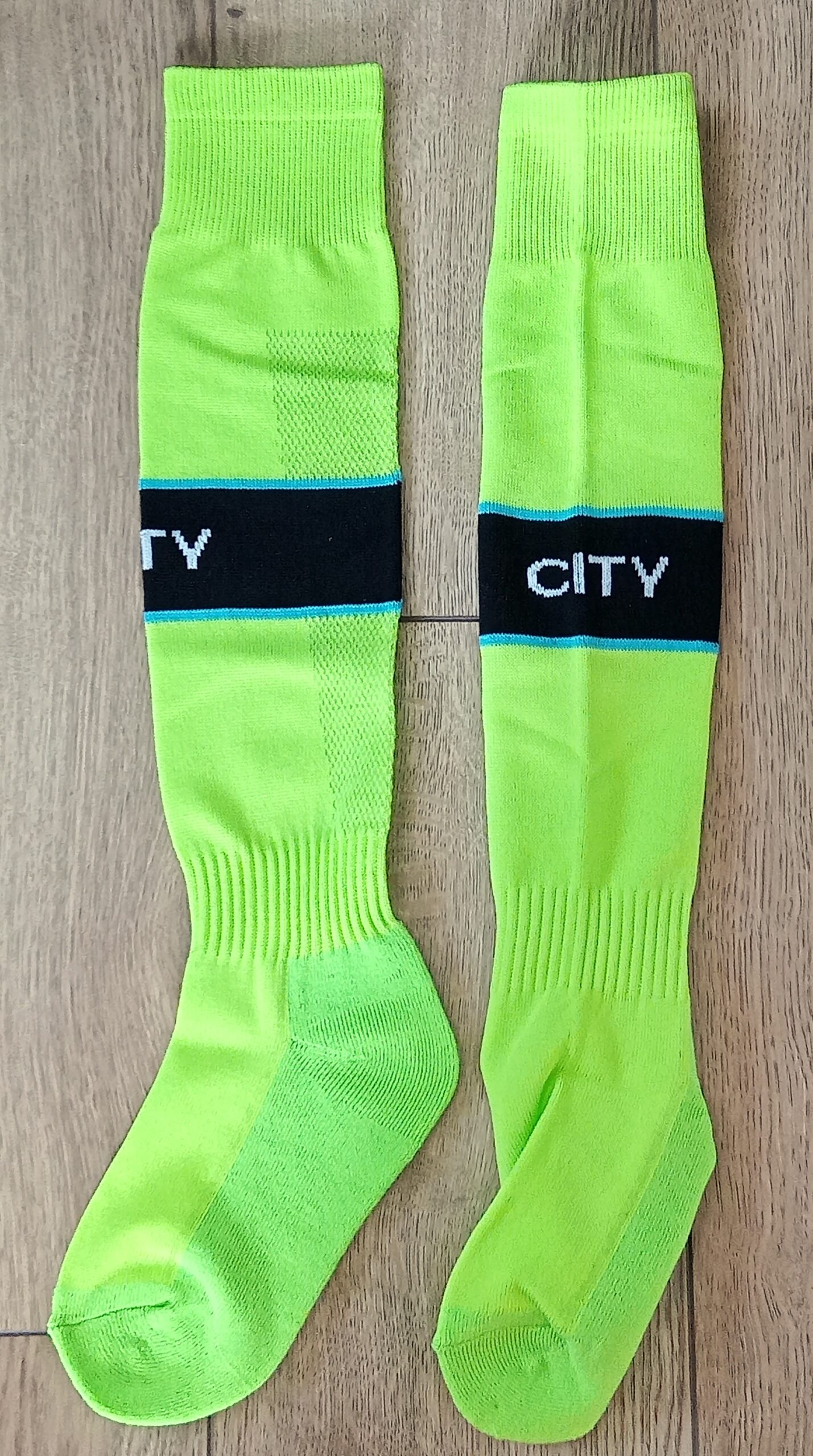 Гетри дитячі із символікою футбольного клубу MANCHESTER CITY AWAY 2025, розмір 27-35, колір салатовий