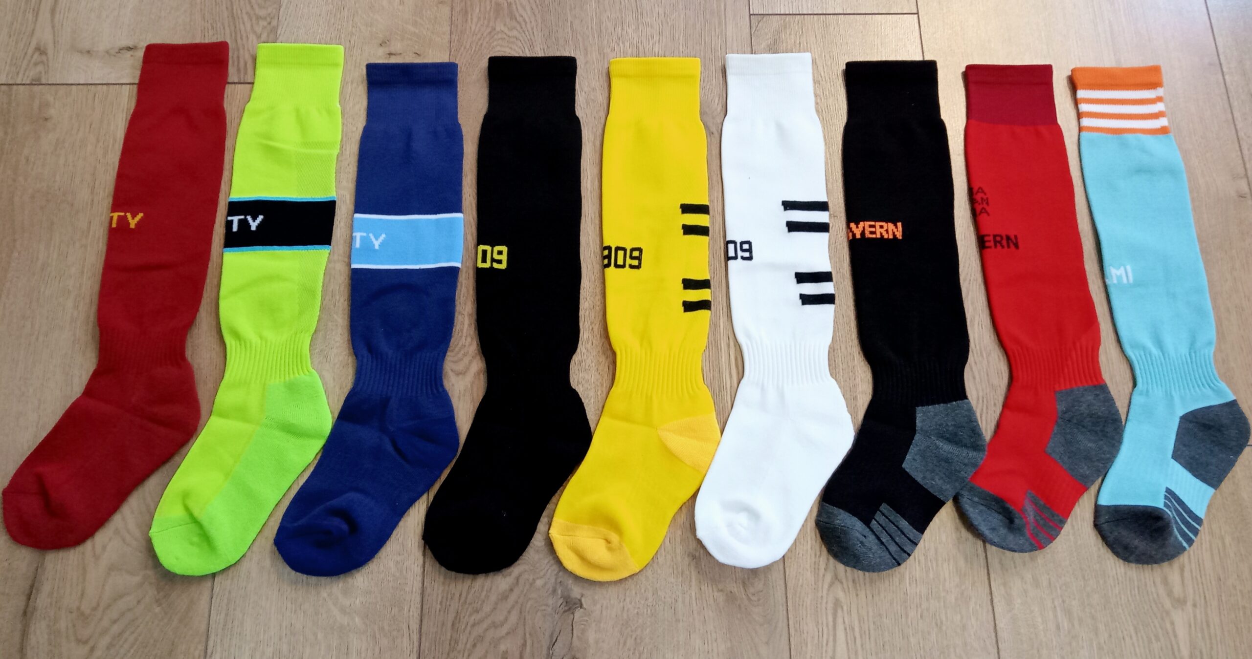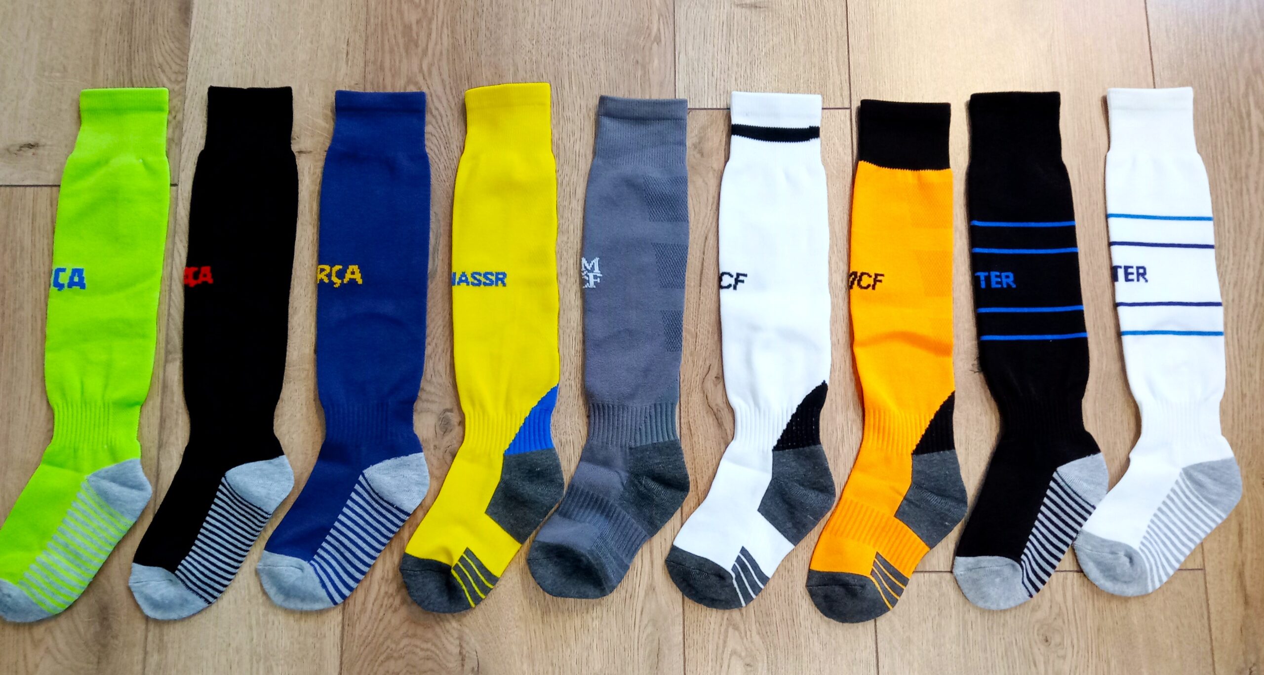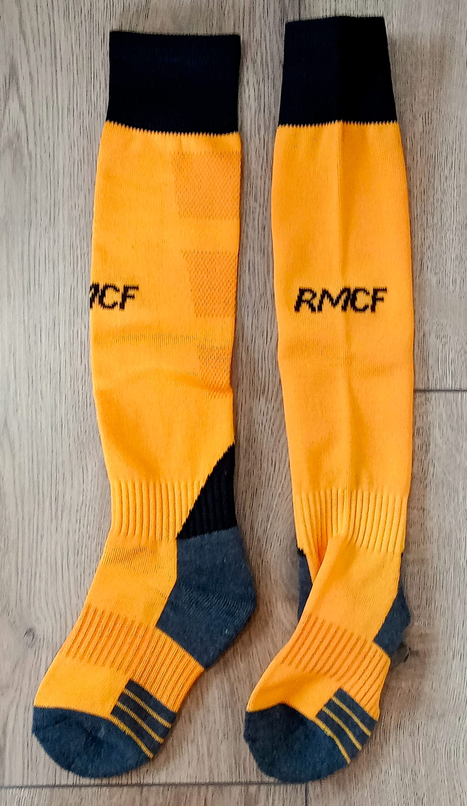 Гетри дитячі із символікою футбольного клубу REAL MADRID HOME 2025, розмір 27-35, колір помаранчевий-чорний
