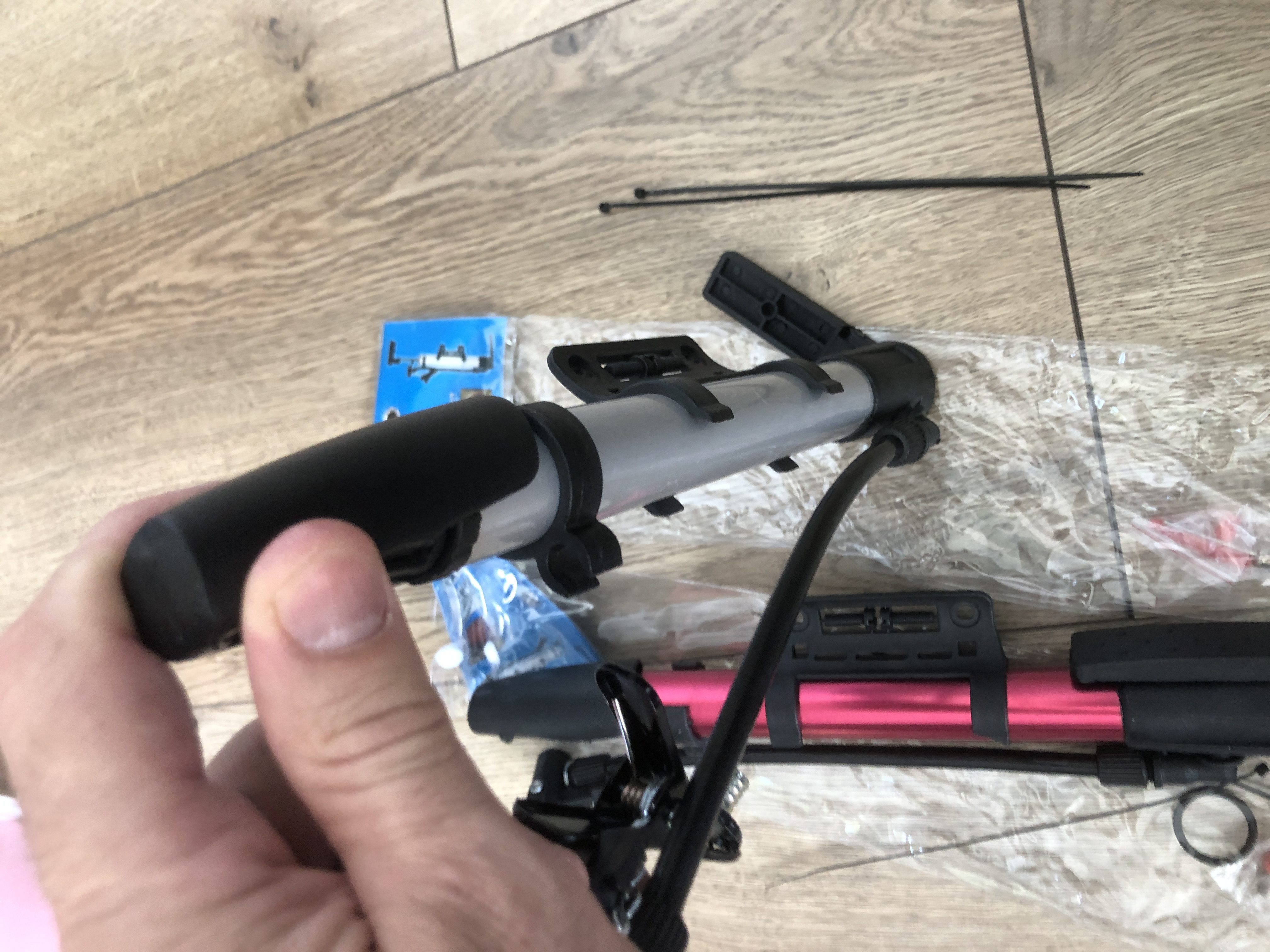 Насос для м'яча (31 см), пластик, в пакеті, шланг, голка, насадка