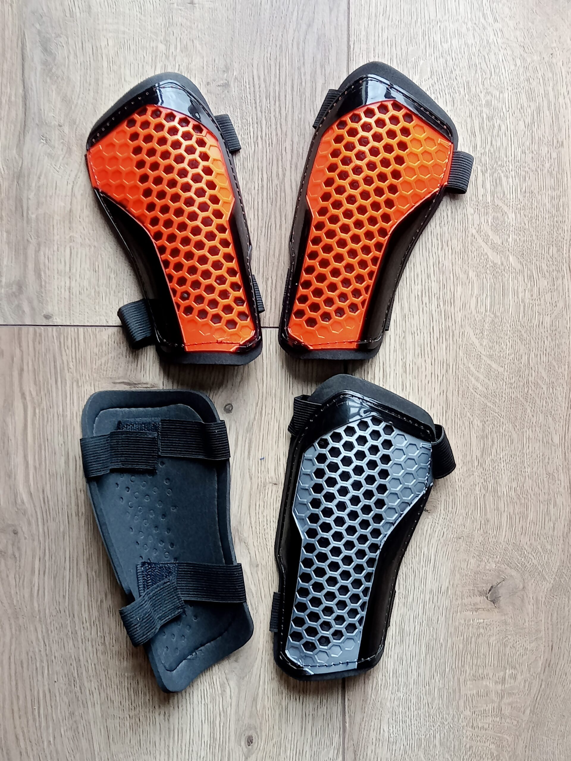 Зовнішня частина щитків виготовлена із міцного пластику. Внутрішня сторона - з етиленвінілацетату. М'який, пінистий матеріал амортизує удари та робить використання захисних аксесуарів більш комфортним.
