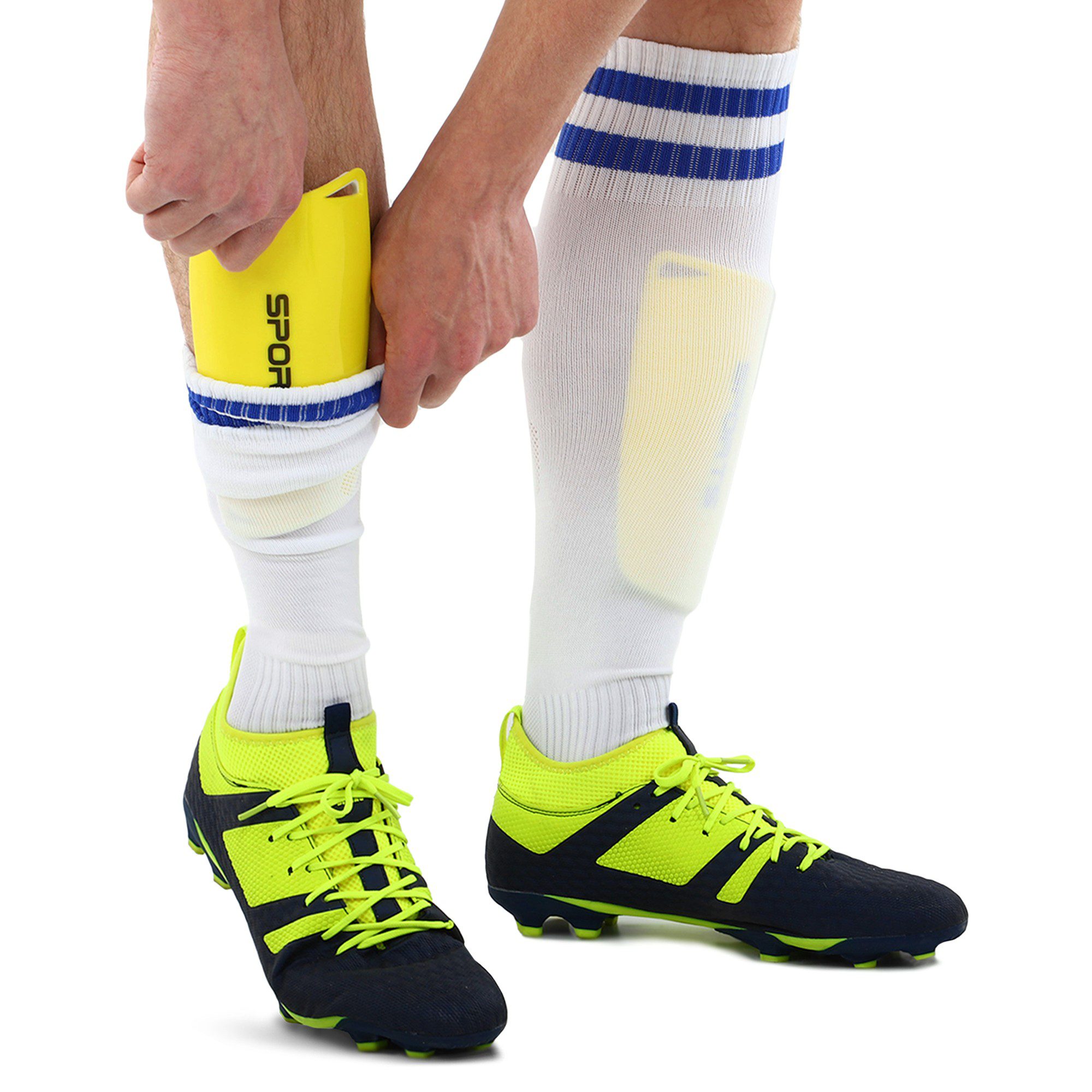 Щитки футбольні є жорсткими накладками на передню частину ноги і призначені для захисту гомілки гравця. Ергономічна конструкція забезпечує високий рівень захисту та комфорт спортсмена, щитки не заважають виконувати точні передачі та контролювати м'яч під час бігу. Зовнішня поверхня щитків виготовлена із пластику з високою міцністю, підкладка – з EVA. Обидва матеріали дуже легкі та не створюють додаткового навантаження на ноги. Під час прийому м'яча, що летить на великій швидкості, зовнішня поверхня щитків приймає він все навантаження, а м'який внутрішній шар поглинає ударну енергію. Дизайн щитків виконаний у сучасному стилі та дозволяє комбінувати екіпірування з формою різного кольору.